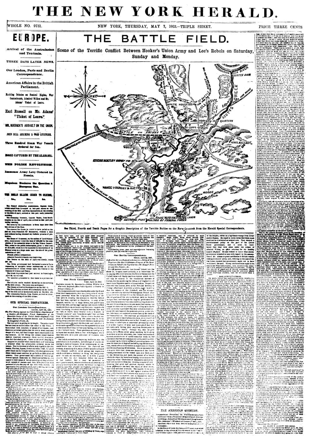 General news articles from around the world, including a humorous, in-depth description of a 7-foot-long, 3.5-ton piece of cheese on display at the Toronto Agricultural Fair in 1866