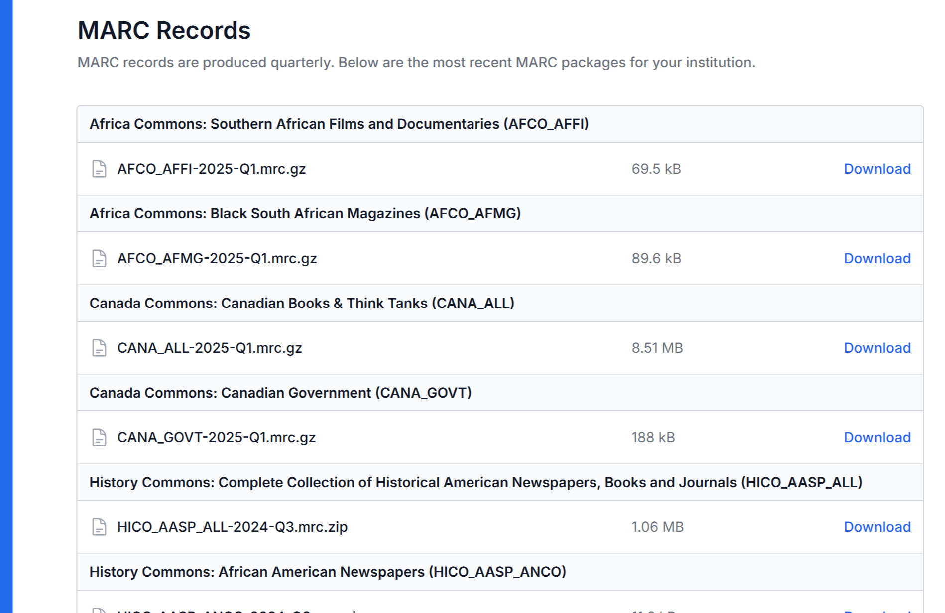 We’ve released updated MARC records for our Coherent Digital Commons products. While MARC record updates are a routine part of our commitment to accuracy and discoverability, this is a special update–with better records for improved metadata quality across our platforms. The new records include enhanced descriptions, refined keyword tagging, and stronger alignment with provider-neutral standards—all designed to support better searchability and seamless cataloging.